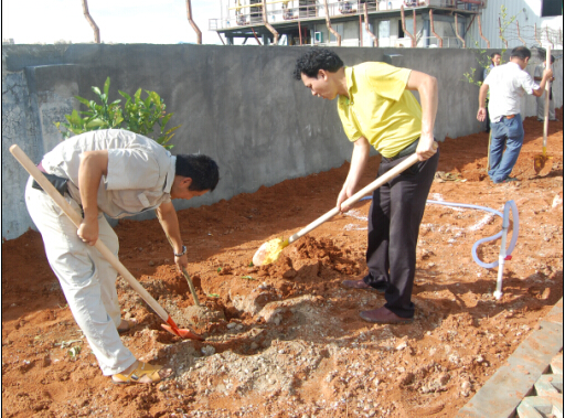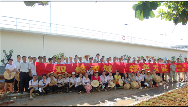 為配合三亞“雙修雙城”建設(shè),同時為了更好地美化廠區(qū)環(huán)境,提高職工的環(huán)境生態(tài)保護(hù)意識和責(zé)任感,以實際行動,為水業(yè)、為社會增添綠色,為三亞城市建設(shè)提供有力的供水保障,為三亞“雙修雙城”建設(shè)助力,我司經(jīng)精心組織于2016年6月25日下午在西部水廠展開了別開生面的百人植樹活動,活動中每個員工都滿懷干勁和激情,大家分工協(xié)作,揮舞鐵揪,填土的填土,種樹的種樹,不一會兒,廠區(qū)綠化帶上已滿是小樹,植樹員工還將寫著“水業(yè)林”和植樹者名字的牌子掛在了樹上?;顒咏Y(jié)束后,公司員工們都認(rèn)識到勞動是快樂的,快樂是分享的。因為種下的是希望,收獲的則是一片蔥郁。車上,公司植樹員工分享植樹過程的樂趣,開心,興奮,一路暢快,看著窗外,雨后的天空變得更藍(lán)更美……