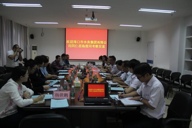 2016年12月10日上午,??谑兴畡?wù)集團(tuán)有限公司龍翔春董事長、陳洪總經(jīng)理等一行人蒞臨我司考察交流,章梁總助向??谒就首髁宋宜酒髽I(yè)概況介紹,隨后,我司總經(jīng)理袁文革及公司各位代表與??谒就试诔擎?zhèn)供水建設(shè)及生產(chǎn)運(yùn)營方面作了深入交流,雙方均表示受益良多,會后,??谒就蕝⒂^了西部水廠,對我司西部二期工程項(xiàng)目給予了高度評價,并表示在以后的工作中要加強(qiáng)兩水司之間的交流與了解。本次交流會在友好、熱烈的氣氛中結(jié)束。