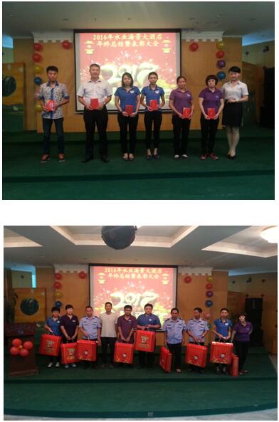 年會上,酒店章梁總經(jīng)理做了2016年工作總結(jié)及2017年工作部署,分析了2016年及2017年的旅游市場形勢,并指出了各部門工作中的不足,會上表彰了各部門工作突出的員工并頒發(fā)了年度、季度優(yōu)秀員工的證書及生日員工賀卡。