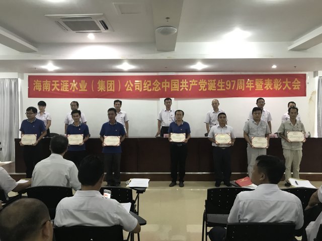 為紀(jì)念中國共產(chǎn)黨建黨97周年,貫徹落實市國資委黨委的工作部署,大力宣傳我司各級黨組和廣大黨員在生產(chǎn)經(jīng)營和“兩學(xué)一做”學(xué)習(xí)教育中涌現(xiàn)出來的先進典型, 6月29日下午,海南天涯水業(yè)(集團)公司在集團公司八樓會議室召開紀(jì)念建黨97周年暨七一表彰大會。大會由黨委副書記周存榮主持,公司黨委委員、黨總支委員、黨支部委員、全體優(yōu)秀共產(chǎn)黨員、優(yōu)秀黨務(wù)工作者、黨員代表共85人參加了會議。