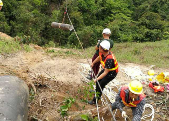 北部山區(qū)飲水安全工程現(xiàn)場(chǎng)在三亞市高峰片區(qū)和育才生態(tài)區(qū)之間,供水管道的敷設(shè)需翻山越嶺,地形起伏較大,溝塹、河溝較多,無(wú)法采用現(xiàn)代機(jī)械化施工,且甚少現(xiàn)狀道路可利用直接將管道運(yùn)至施工現(xiàn)場(chǎng),交通極不便利,施工難度極其困難。公司領(lǐng)導(dǎo)和項(xiàng)目相關(guān)黨員干部為推進(jìn)項(xiàng)目建設(shè),幾乎扎根在工地,率先垂范,與工人同吃、同住、同勞動(dòng)、同學(xué)習(xí),為5.07萬(wàn)山區(qū)人民早日飲上放心的自來(lái)水夜以繼日的奮戰(zhàn)在一線。三亞地處熱帶,今年入夏以來(lái),高溫天氣(≥33℃)頻現(xiàn),同時(shí)近期受臺(tái)風(fēng)影響,山區(qū)降雨頻繁,這些因素都給工程施工造成了極大的影響,北部山區(qū)飲水安全工程廣大一線員工不畏酷熱和暴雨堅(jiān)守在工程崗位上,為消除最后一片供水盲區(qū),實(shí)現(xiàn)三亞全域城鄉(xiāng)供水服務(wù)均等化目標(biāo)做出了積極貢獻(xiàn)。