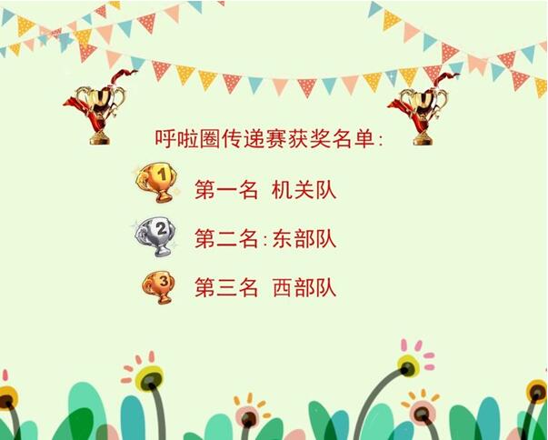 毛毛蟲和呼啦圈項(xiàng)目共有6支隊(duì)伍參加,分別是機(jī)關(guān)隊(duì)、東部隊(duì)、西部隊(duì)、二次供水、安裝隊(duì)、物業(yè)隊(duì),每隊(duì)10位選手, 其中男選手6名,女選手4名。比賽采用以完成用時最少者依次排名。