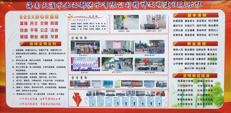 為貫徹落實(shí)市委、市政府的統(tǒng)一部署,深入開(kāi)展助力“創(chuàng)文鞏衛(wèi)”工作,推動(dòng)“勇當(dāng)先鋒、做好表率”專(zhuān)題活動(dòng)與全國(guó)文明城市創(chuàng)建工作融合發(fā)展,引導(dǎo)和帶動(dòng)我司全體干部職工參與社會(huì)文明大行動(dòng),海南天涯水業(yè)(集團(tuán))公司開(kāi)展“文明交通志愿服務(wù)”和“文明衛(wèi)生行動(dòng)”主題活動(dòng)。