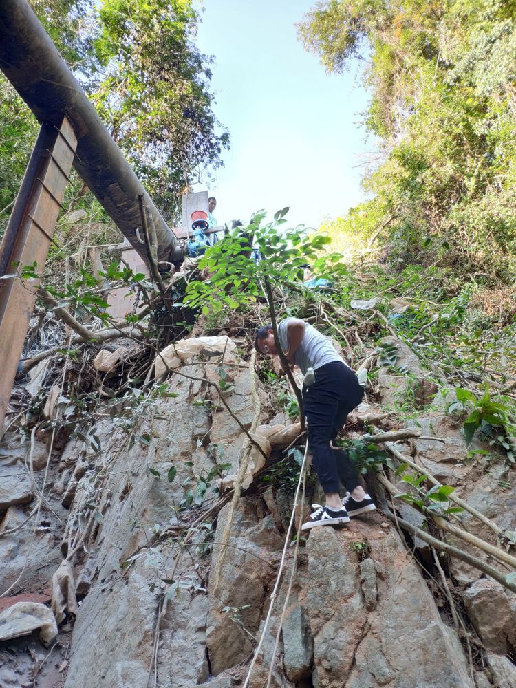 本次活動由公司黨委書記袁文革同志帶隊,各黨委委員分工協(xié)作,活動分為四個小組進(jìn)行?;顒拥攸c地處北部山區(qū)地帶,環(huán)境較為艱苦,各黨員干部發(fā)揮敢于擔(dān)當(dāng),吃苦耐勞的精神,清理了北部水廠廠區(qū)的各個衛(wèi)生死角。受北部山區(qū)地形影響,供水管線大多處于高山險壑等地勢較為險峻的位置,黨員干部們不畏艱險,翻山越嶺,在為供水管道沿線播撒了綠色種子的同時,逐個檢查了沿線管道的加固情況,為供水管線排查隱患。