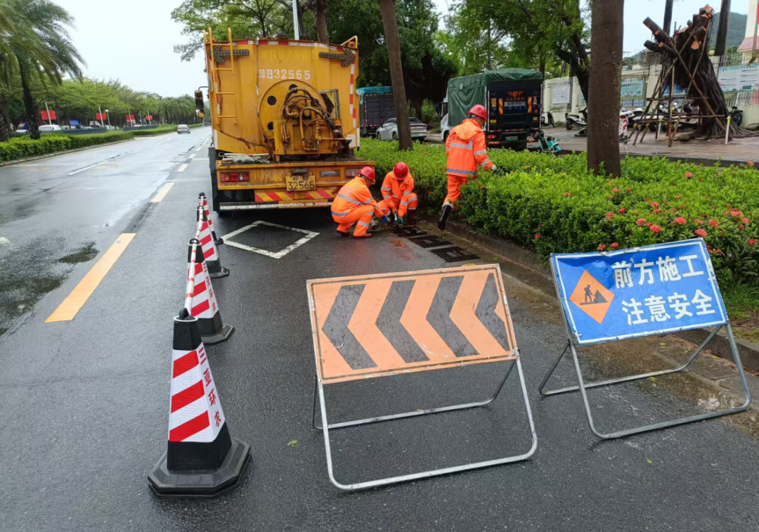 小長(zhǎng)假期間,三亞市污水管網(wǎng)管理有限公司(簡(jiǎn)稱“管網(wǎng)公司”)組建排澇專業(yè)隊(duì)伍嚴(yán)陣以待,在風(fēng)雨來臨前迅速啟動(dòng)應(yīng)急響應(yīng)機(jī)制,并借鑒以往臺(tái)風(fēng)應(yīng)對(duì)經(jīng)驗(yàn),300余名應(yīng)急保障人員提前在低洼路段和易積水區(qū)域前置布防應(yīng)急搶險(xiǎn)設(shè)備。大功率抽水泵、發(fā)電機(jī)等專業(yè)設(shè)備被提前部署到關(guān)鍵點(diǎn)位,確保一旦出現(xiàn)積水情況,能夠第一時(shí)間開展應(yīng)急抽排作業(yè)。在抗擊臺(tái)風(fēng)的過程中,他們晝夜不停,始終堅(jiān)守在排澇一線,清理堵塞的雨水篦子,打開井蓋加速排水,設(shè)置危險(xiǎn)標(biāo)識(shí),確保排水暢通,在臺(tái)風(fēng)肆虐時(shí)成為了這座城市最堅(jiān)實(shí)的防線。